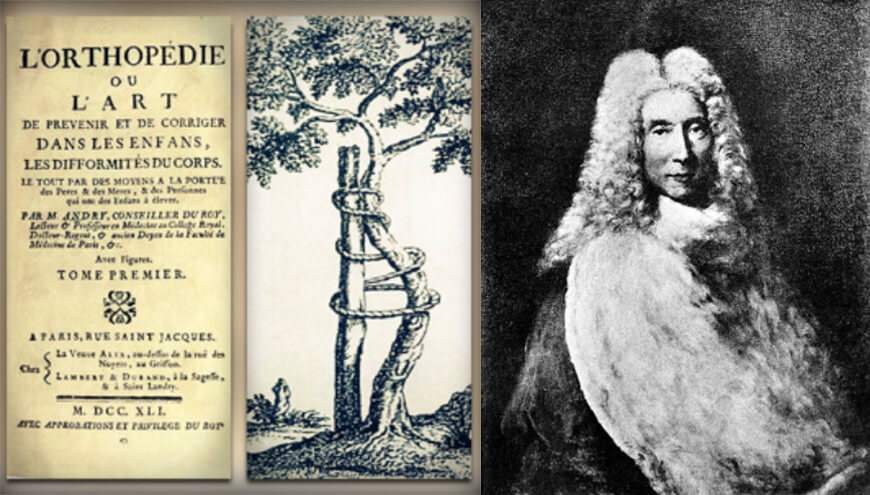 - なぜ木のイメージかというと・・・ 整形外科の名称は、パリ大学医学部長のNicolas Andry(1658~1742 図1)が1741年に著した「L‘ortho-pedie」という著書に由来します。